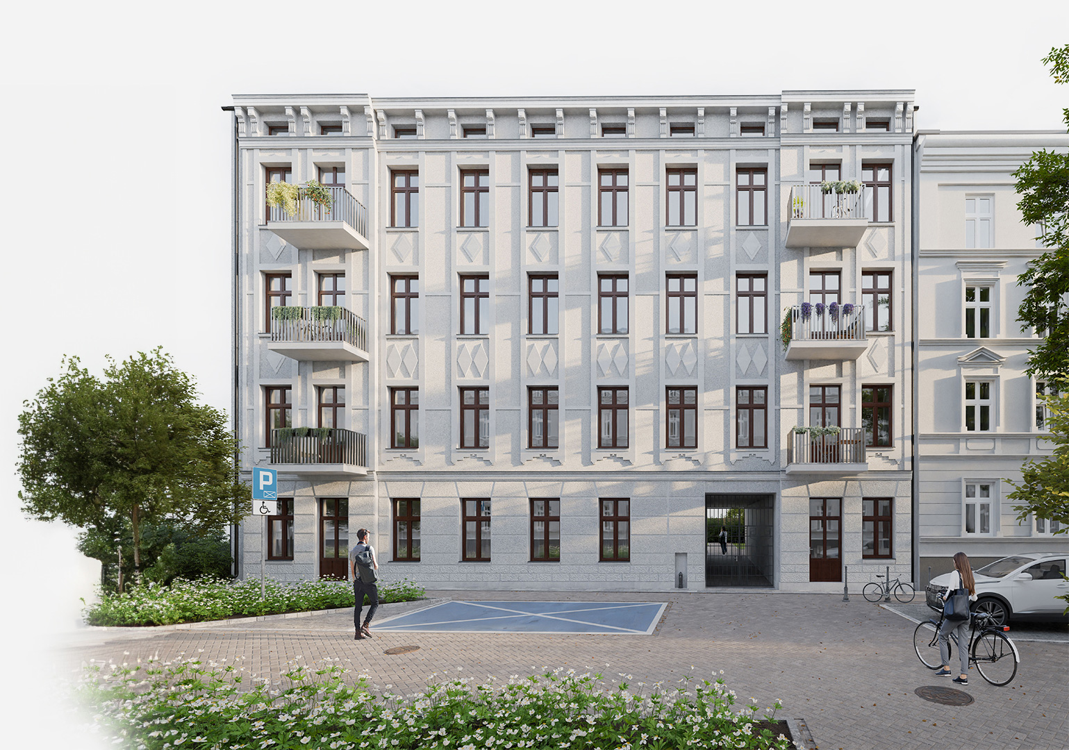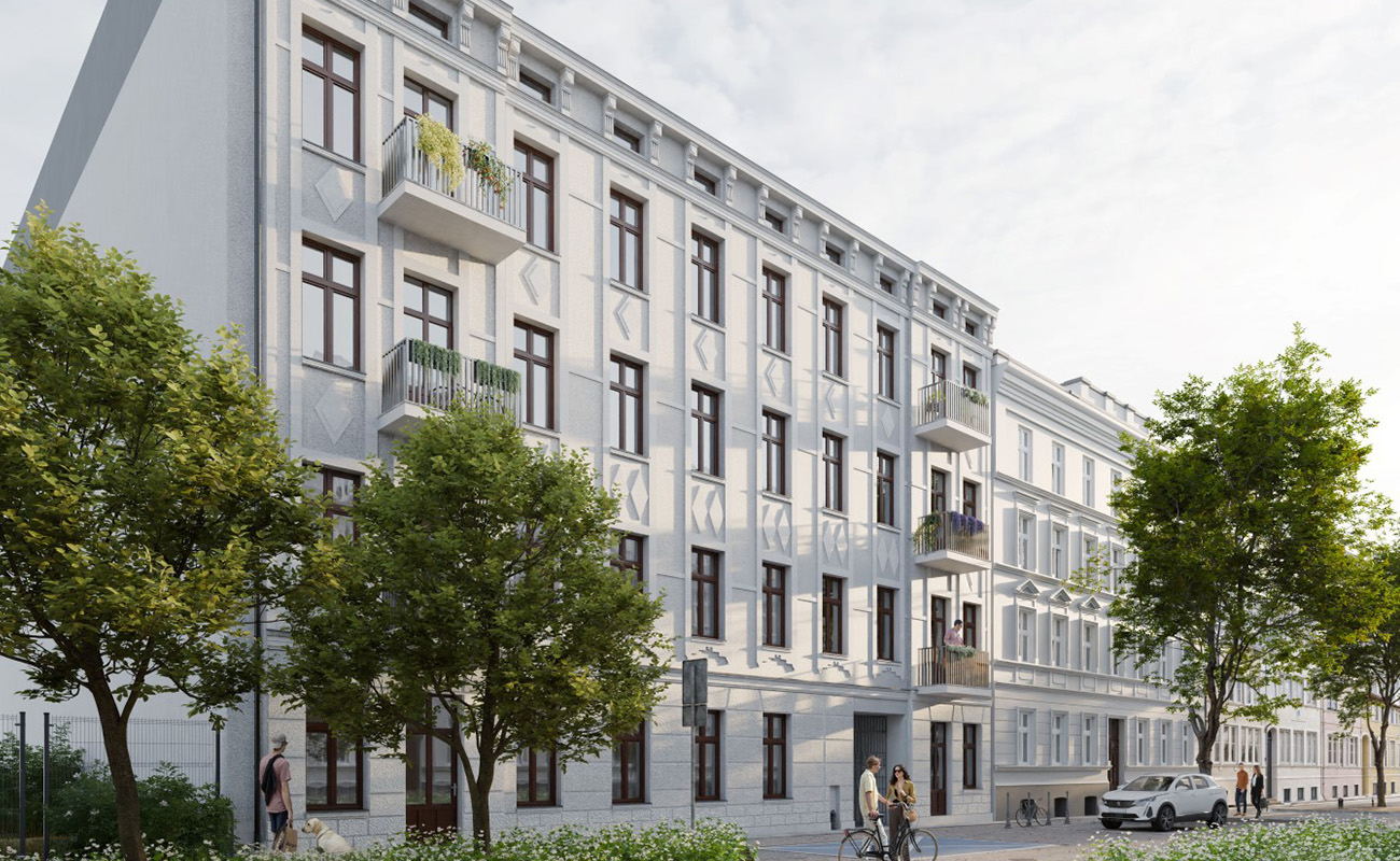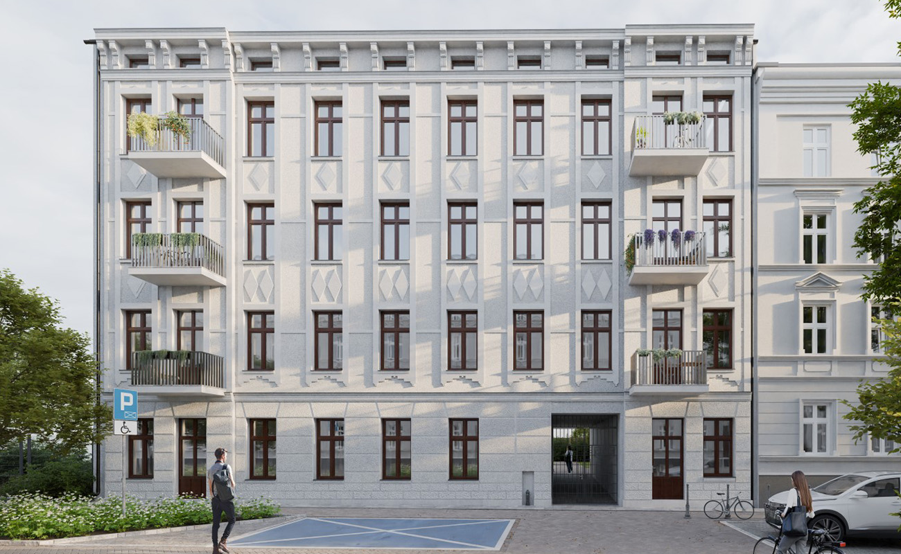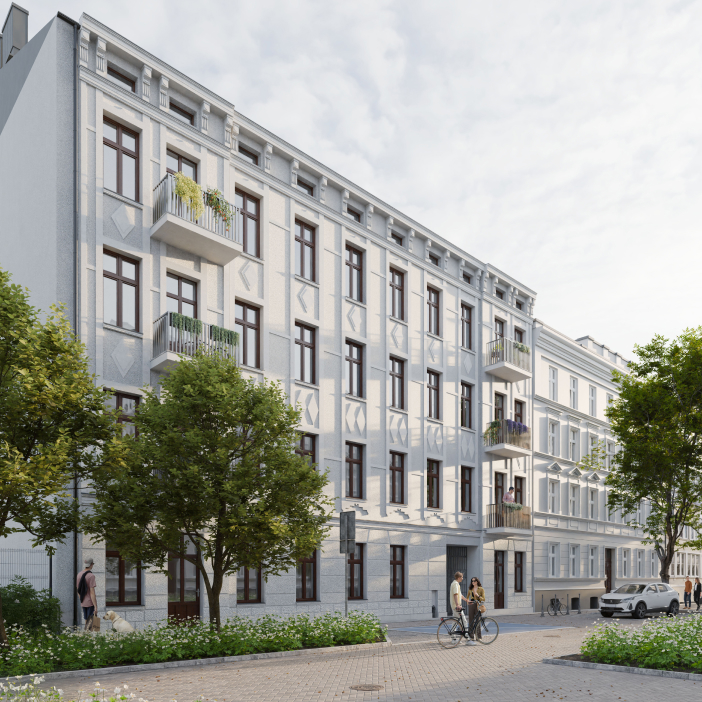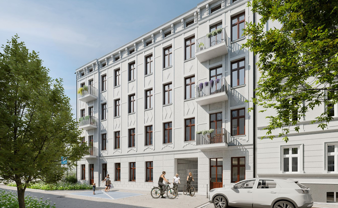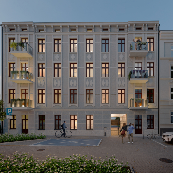 rewitalizowana okolica - kamienica umiejscowiona w odnowionej części miasta